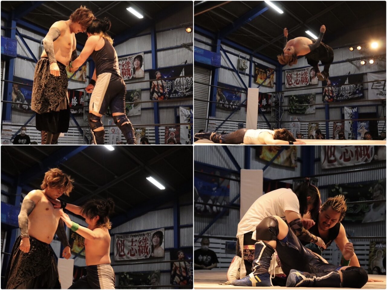 最上九&○中野貴人(プロレスリングBASARA) vs リッキー・フジ&●花見達也